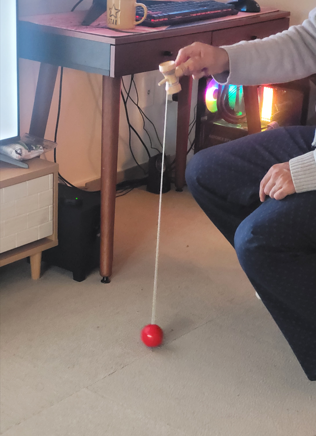 This traditional toy consists of a wooden stick or “sword” as per the translation of ken, and a ball, which is the dama attached via a string.