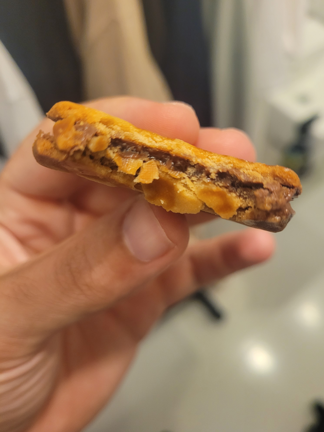 The aesthetics don’t end at the wrapping; the caramel cookie sandwich has a beautiful design that deserves some appreciation.