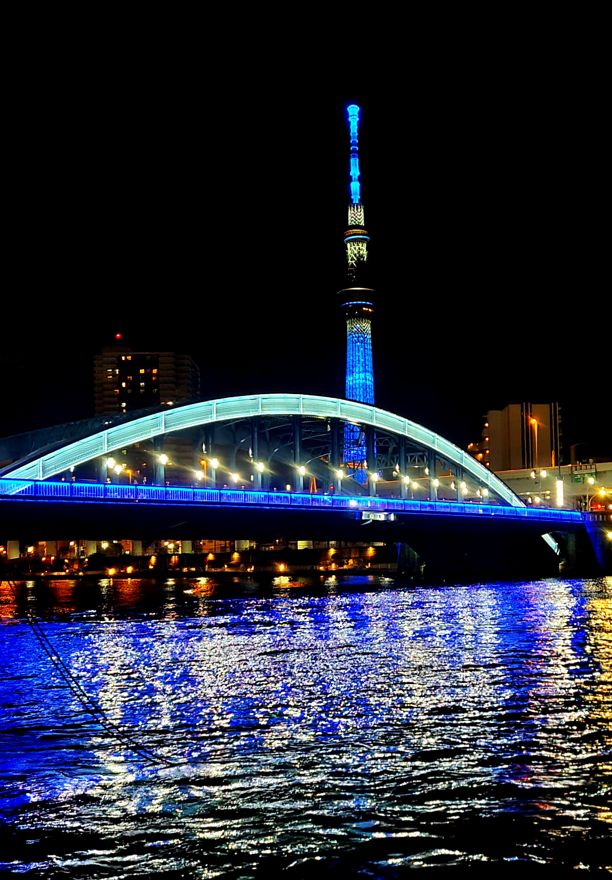 Last but not least is my top pick for nighttime river viewing, and that’s the Sumida River located in Tokyo’s Asakusa district. Featuring stunning views of the Sumida Bridge and Tokyo Skytree tower in its glowing blue colors, it has the amazing effect of lighting up the river with a brilliant blue sparkle. A great spot to enjoy a lively chat with friends or simply reflect on life in solitude, the Sumida River is a must-visit, particularly in the quiet hours of the night.