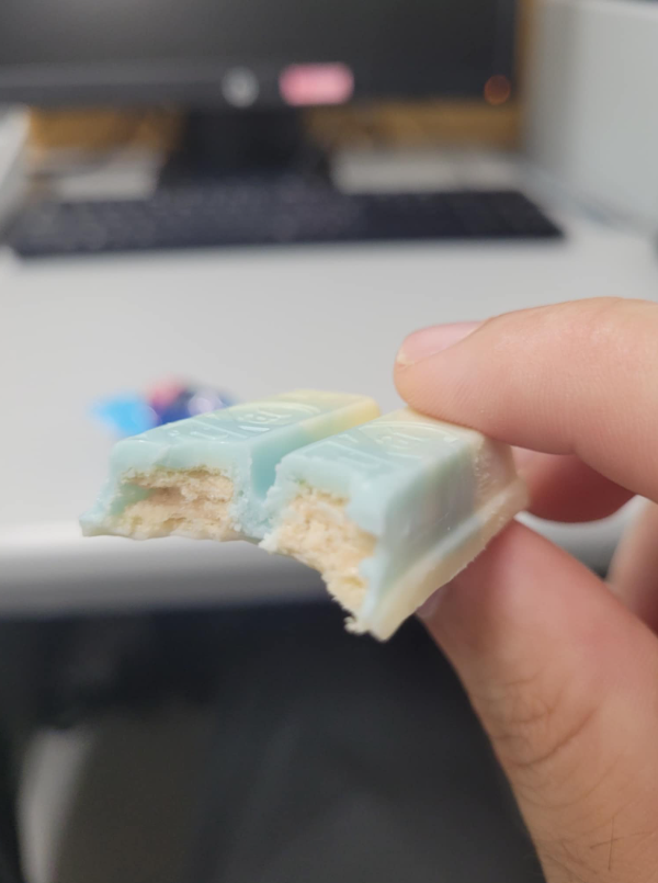 The beauty of the Blueberry Cheesecake Kitkat doesn’t end there, but even after opening the treat, you will see a beautiful spectrum of light blue and white colors that transition brilliantly.